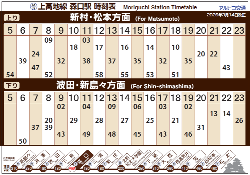 | お取り扱い | 鉄道上高地線乗車券、 回数券、 定期券、 入場券 |