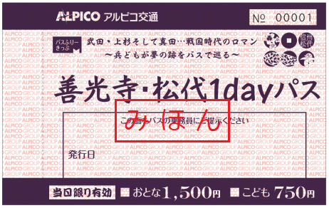| きっぷ名称 | 善光寺・松代1dayパス |